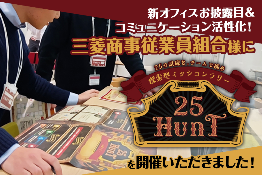 2025年3月に、東京都内に自社オフィスを構える三菱商事従業員組合様の会議室にて、謎解きイベント「25HUNT」を活用した社内交流イベントを開催しました。オフィス移転を機に、組合員同士のコミュニケーション活性化と、オフィスのお披露目を目的とした本イベントでは、楽しみながら自然に打ち解ける仕掛けが随所に盛り込まれました。