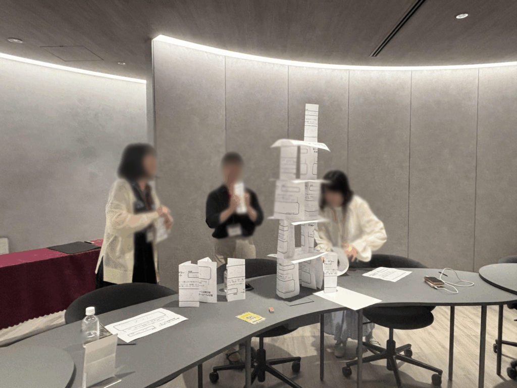 続いて、自己紹介シートを使ったペーパータワーを作るミニゲームに取りかかります。