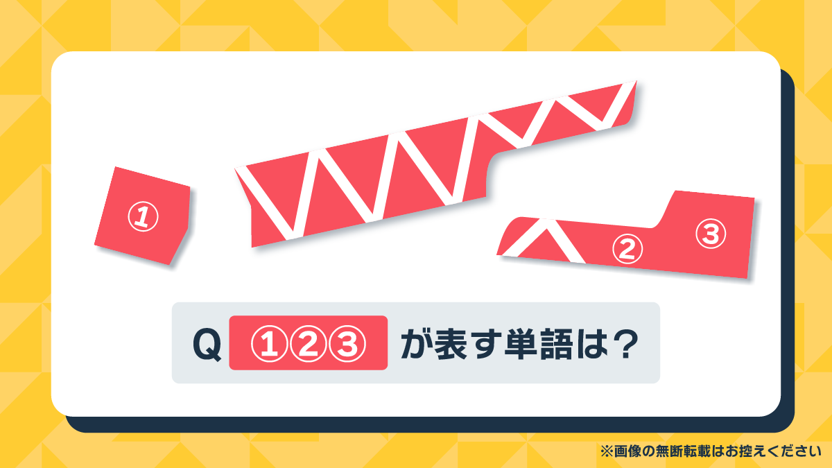答えが「自動車」「CAR(カー)」の画像の右下の文字を順に読むと、答えは「バンニン」となります。